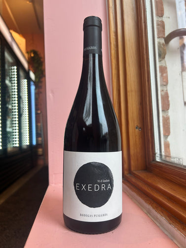 Exedra Negre is made exclusively with Garnatxa planted on limestone and clay soils, at 500 meters above sea level, with a breath-taking view to the beautiful mountains of Montserrat, in the outskirts of the village of Odena.