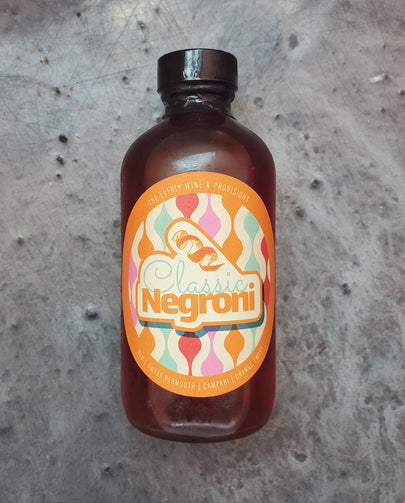 A traditionally made Negroni is stirred, not shaken, and built over ice in an old-fashioned or rocks glass and garnished with a slice of orange.